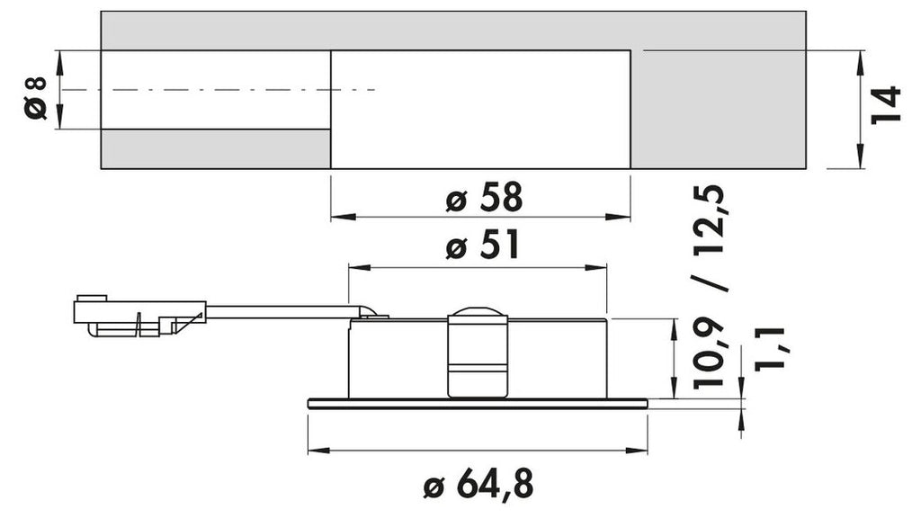 — Einbautiefe 14 mm