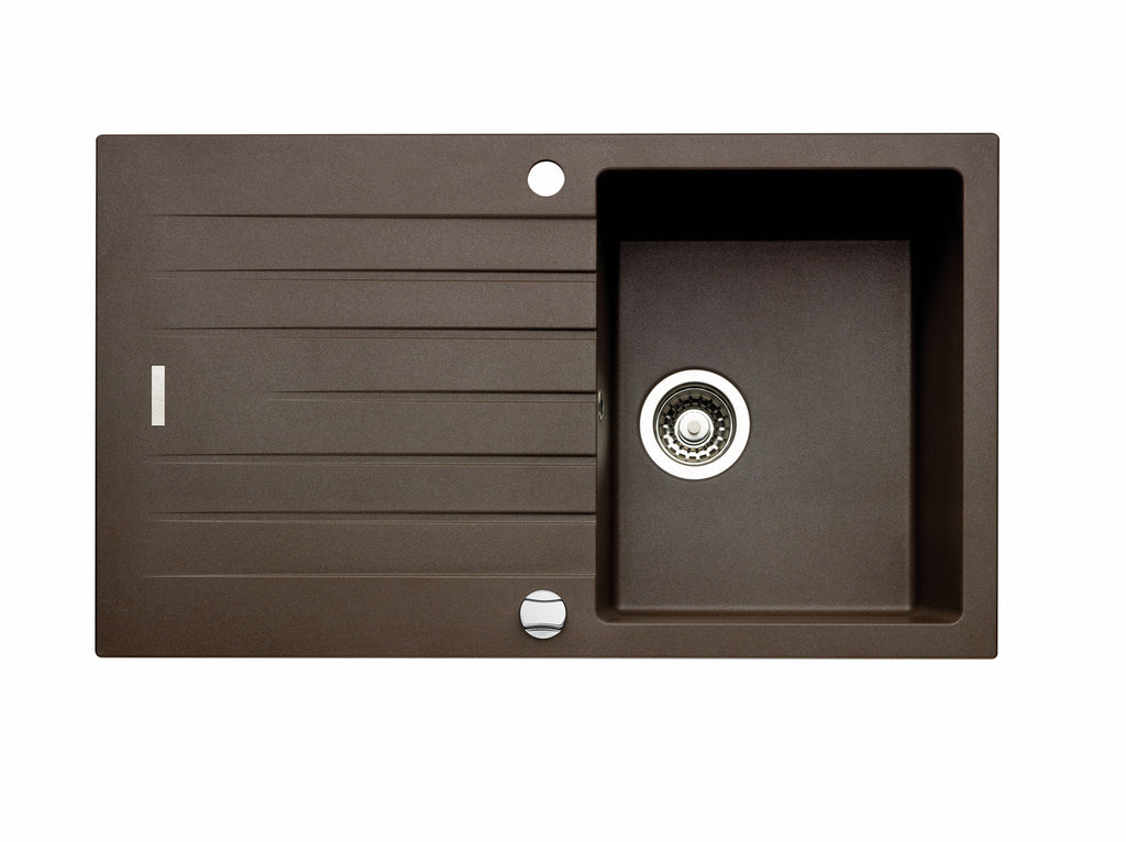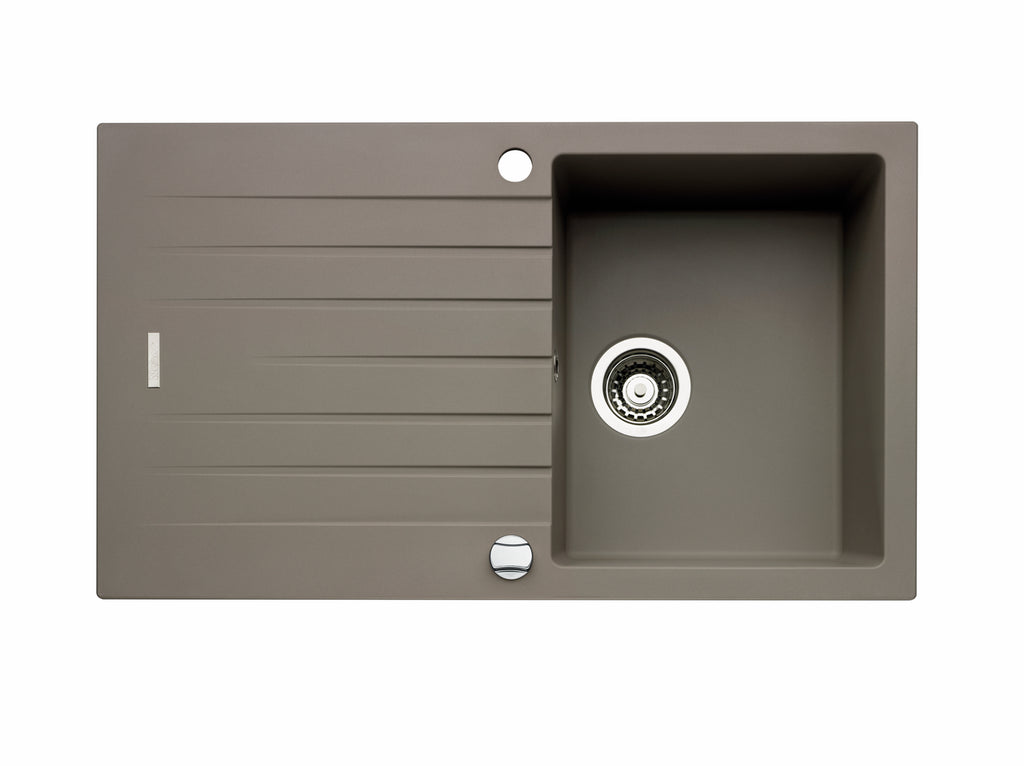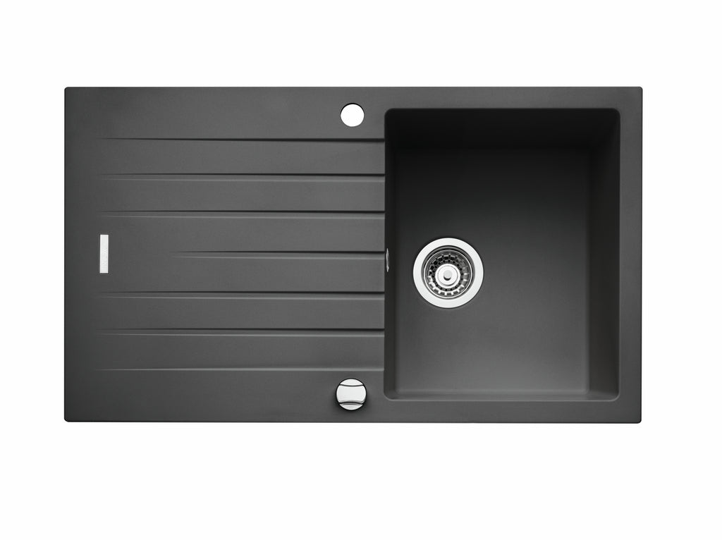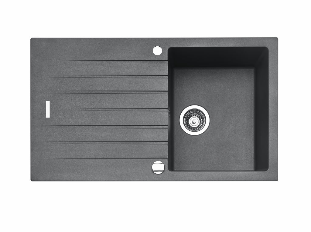 Einbauspüle. Composite, mit Abtropffläche, reversibel. 3½" Siebkorbventil mit Drehexzentergarnitur, verchromt.