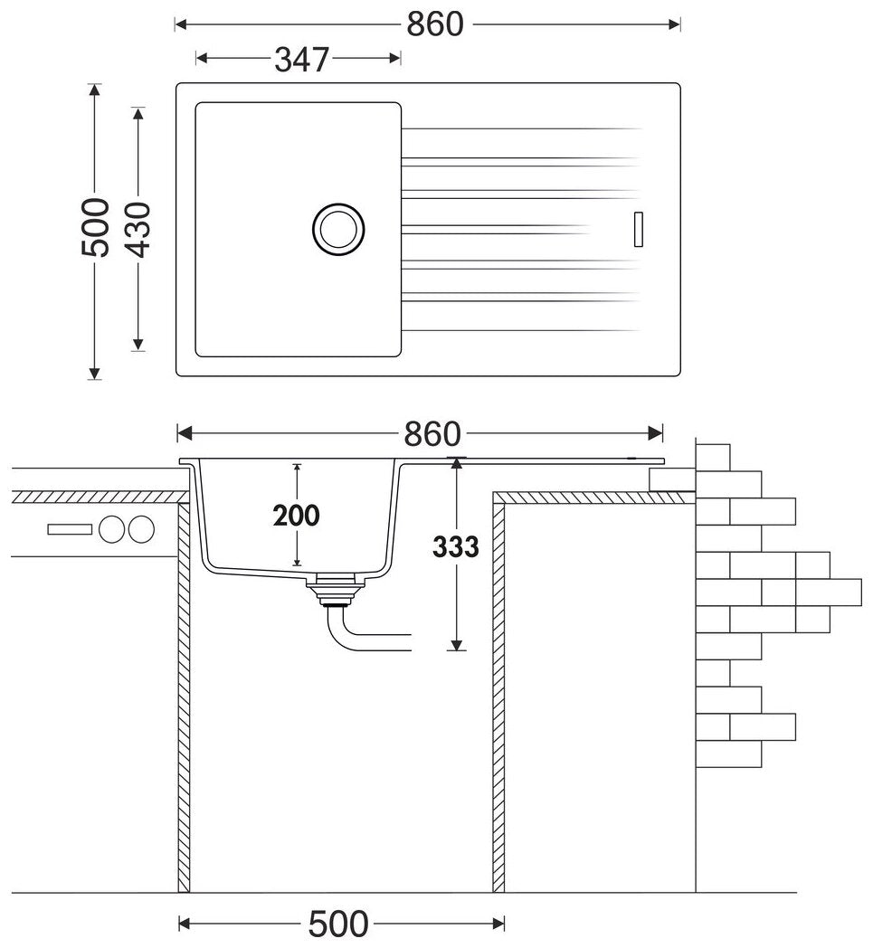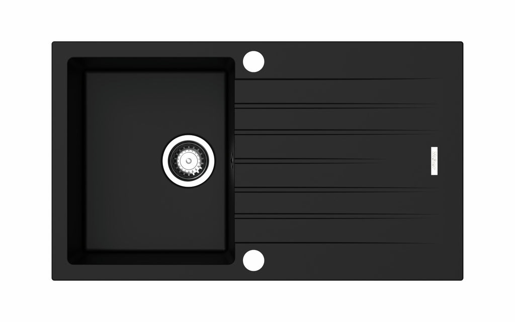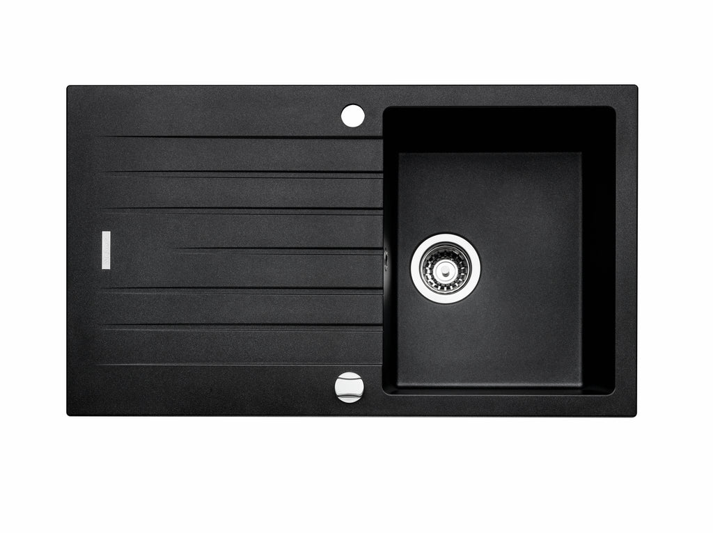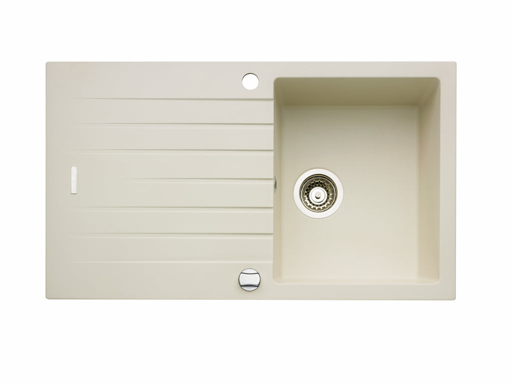 Einbauspüle. Composite, mit Abtropffläche, reversibel. 3½" Siebkorbventil mit Drehexzentergarnitur, verchromt.