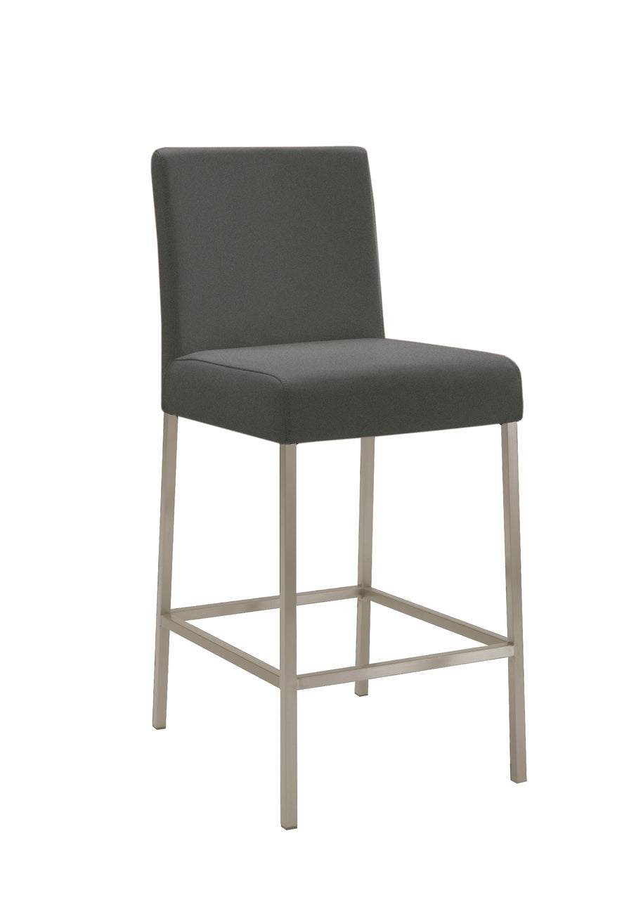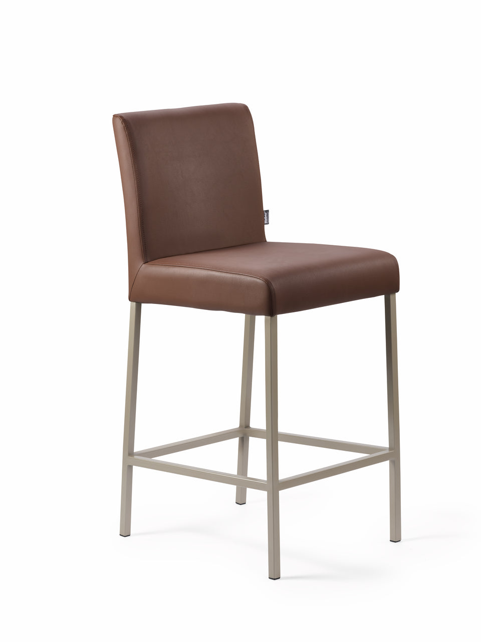 Der Barhocker Bringo 2KT setzt einen geschmackvollen Akzent in der Einrichtung und bietet einen herrlichen Sitzkomfort für behagliche Stunden. Mit seinem modernen und schlichten Design lässt er sich zu vielseitigen Küchenstilen kombinieren - ob zeitlos, elegant oder minimalistisch. Sitz und Rücken begeistern mit einer zurückhaltenden Gestaltung und zeichnen sich durch eine leicht abgerundete Formsprache aus. Charakteristisch ist zudem ein hohes Gestell mit schlanken Beinen, wodurch sich der Stuhl optimal für Hausbar und Küchentresen einsetzen lässt. Mit seiner geschlossenen Rückenlehne und der bequemen Polsterung an Sitz und Rücken sorgt er für einen angenehmen Komfort. Auf der umlaufenden Fußstütze lassen sich die Füße ganz entspannt abstützen. Durch das Gestell aus Edelstahl punktet der Küchenstuhl mit einer stabilen und langlebigen Qualität. Sein Bezug aus genarbtem Kunstleder hat eine hohe Scheuerbeständigkeit und lässt sich pflegeleicht reinigen. Da Gestell und Bezug in verschiedenen Farbvarianten erhältlich sind, offenbart der Barstuhl viel Spielraum für individuelle Einrichtungswünsche.
