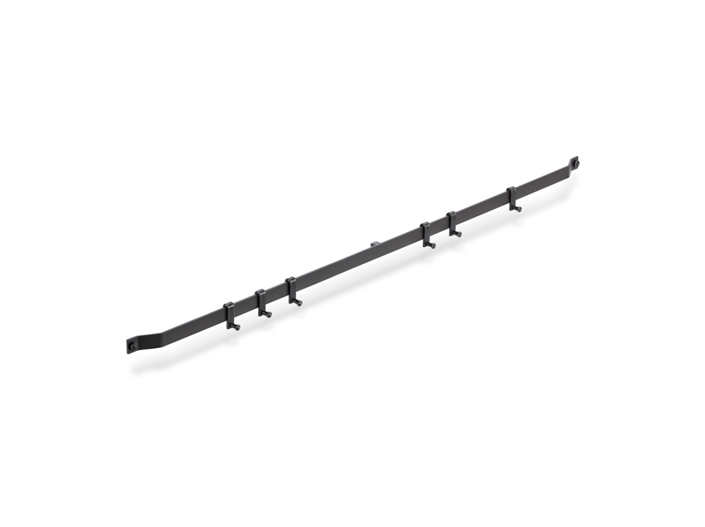 Mit dem Cast Küchenreling-Set lassen sich hängende Küchenutensilien im Bereich zwischen Arbeitsplatte und Oberschrank aufbewahren. Es überzeugt im attraktiven Industrial Stil, womit es einen modernen Akzent in der Kücheneinrichtung setzt. Geliefert wird das Relingsystem inklusive Haken, an denen diverse Küchenhelfer aufgehängt werden können.