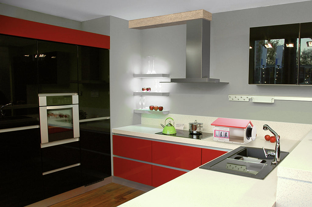 Die COMPAIR® Abluftverkleidung ermöglicht eine elegante Führung des Abluftkanals als flexible Wandlösung. Dabei lässt sich die Verkleidung individuell durch Tapete oder Farbe gestalten. Somit kann sie harmonisch der Einrichtung angepasst werden. Zusätzlich lässt sie sich mit Einbauleuchten bestücken für eine Akzentbeleuchtung in der Küche. Die Luftkanal-Abdeckung besteht aus einer 16 mm starken Spanplatte, die verleimt und beidseitig mit Dübelbohrungen ausgestattet ist. Dabei weist jedes 100 cm lange Element ein gedübeltes Endstück auf. Somit ist eine Reihenbauweise von beliebiger Länge möglich. Die Verkleidung ist in kantiger L-Form gehalten und für alle COMPAIR® Luftkanalsysteme geeignet. Dank des Querschnitts von 220 x 300 mm kann sie gleichermaßen Flachkanäle oder Rundrohre mit einem Übergang zum Mauerkasten aufnehmen. Zum Lieferumfang gehört ebenfalls eine Endkappe. Für eine unkomplizierte Montage werden die zugehörigen Rechteckleisten an Wand und Decke befestigt. Sie dienen zur Aufhängung der L-Verkleidung.