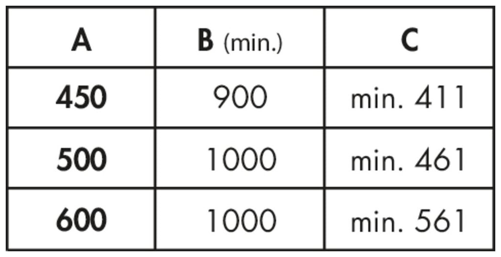 — Einbautiefe mind. 490 mm