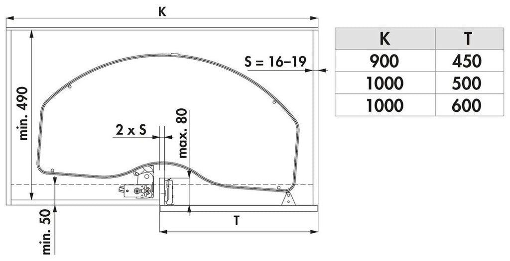— für 900 mm Schrankbreite und 450 mm Türbreite
