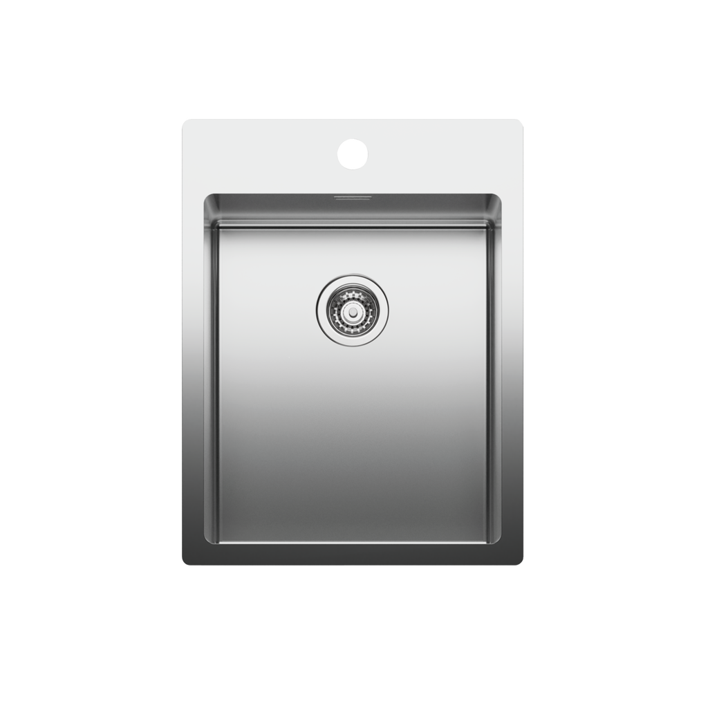 Die NABER-CONTURA® Edelstahl-Einbauspüle Corno Basso PR2 überzeugt optisch mit einem geradlinigen und dadurch zeitlosen Design. In exzellenter Qualität aus Edelstahl gefertigt, zeichnet sie sich durch Oberflächen mit langlebigen und robusten Eigenschaften aus. Zur Grundausstattung zählen eine integrierte Ab- und Überlaufgarnitur. Dank des flachen Rands eignet sich die Einzelspüle für einen flachaufliegenden sowie den flächenbündigen Einbau in die Arbeitsplatte. Es entsteht ein stimmiges Gesamtbild, das den Charakter der Küchenzeile stilvoll unterstreicht und die Pflege des Arbeitsbereichs erleichtert. Der Funktionsumfang der Spüle wird durch optional erhältliches Zubehör wie beispielsweise Schneidbretter und Abtropfgitter erweitert. Wahlweise steht ein Set inklusive der Hochdruckarmatur Arco 1 in edler Chromoptik zur Verfügung.