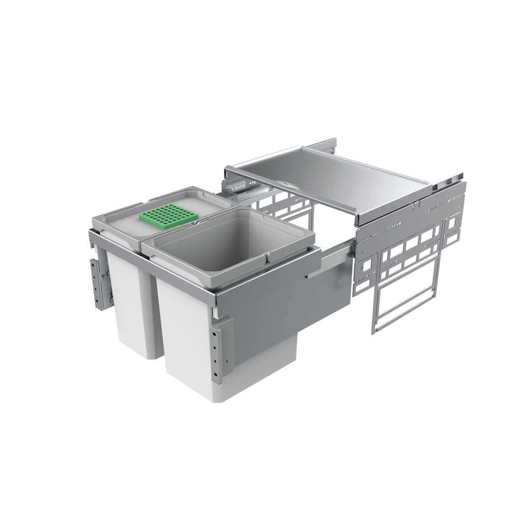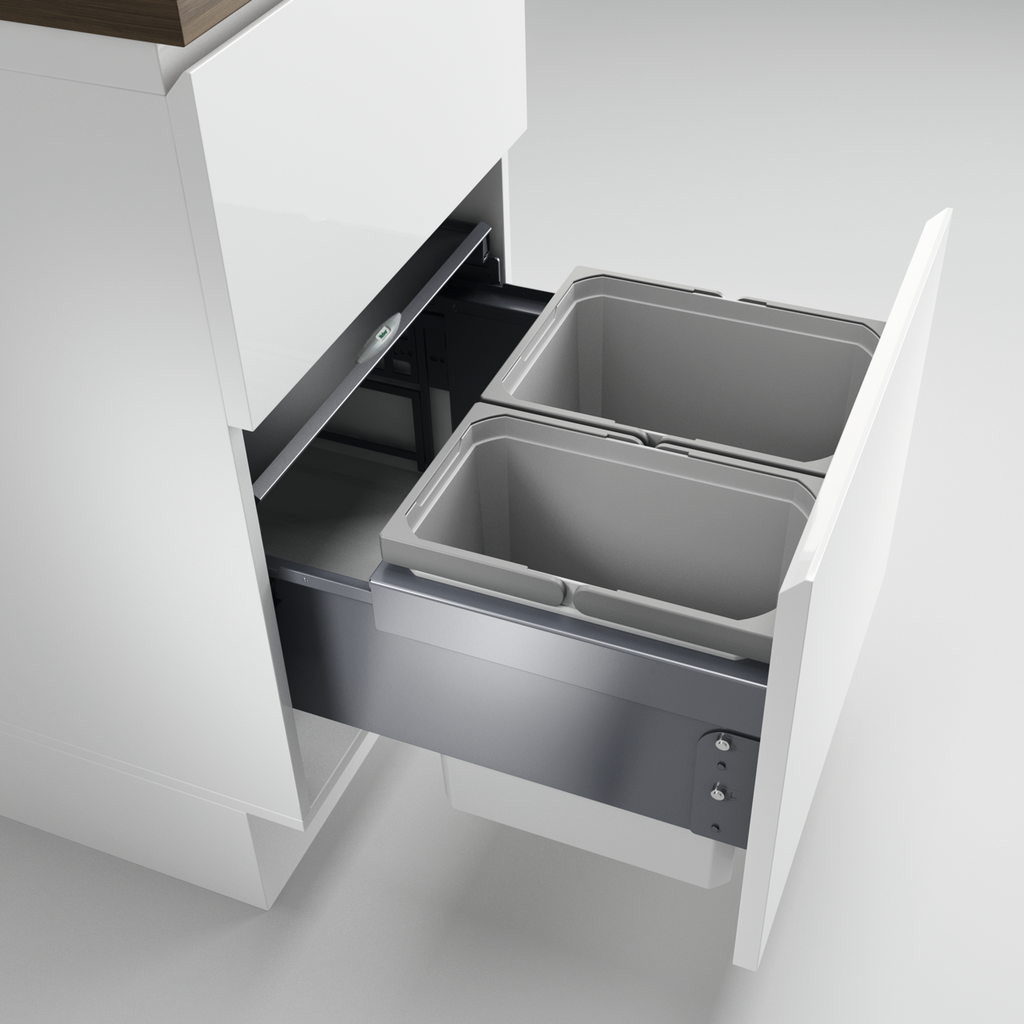 ® Base 360 K/500-2 ist die ideale Wahl für eine gut organisierte Küche und macht die Abfalltrennung zum Kinderspiel. Mit der integrierten Auszugstechnik für Frontauszüge bleibt es elegant in der Küchenzeile versteckt und kommt erst beim Herausziehen zum Vorschein. Von Vorteil ist auch der hohe Bedienkomfort: Durch die leichtgängigen Auszugsschienen ermöglicht der Abfalleimer ein einfaches Ein- und Ausfahren. Damit Abfälle leicht getrennt werden können, gehören zwei Abfallbehälter mit einem Fassungsvermögen von 15,5 Litern und 12 Litern zum Mülltrennungssystem. Das praktische Cox Base-Board