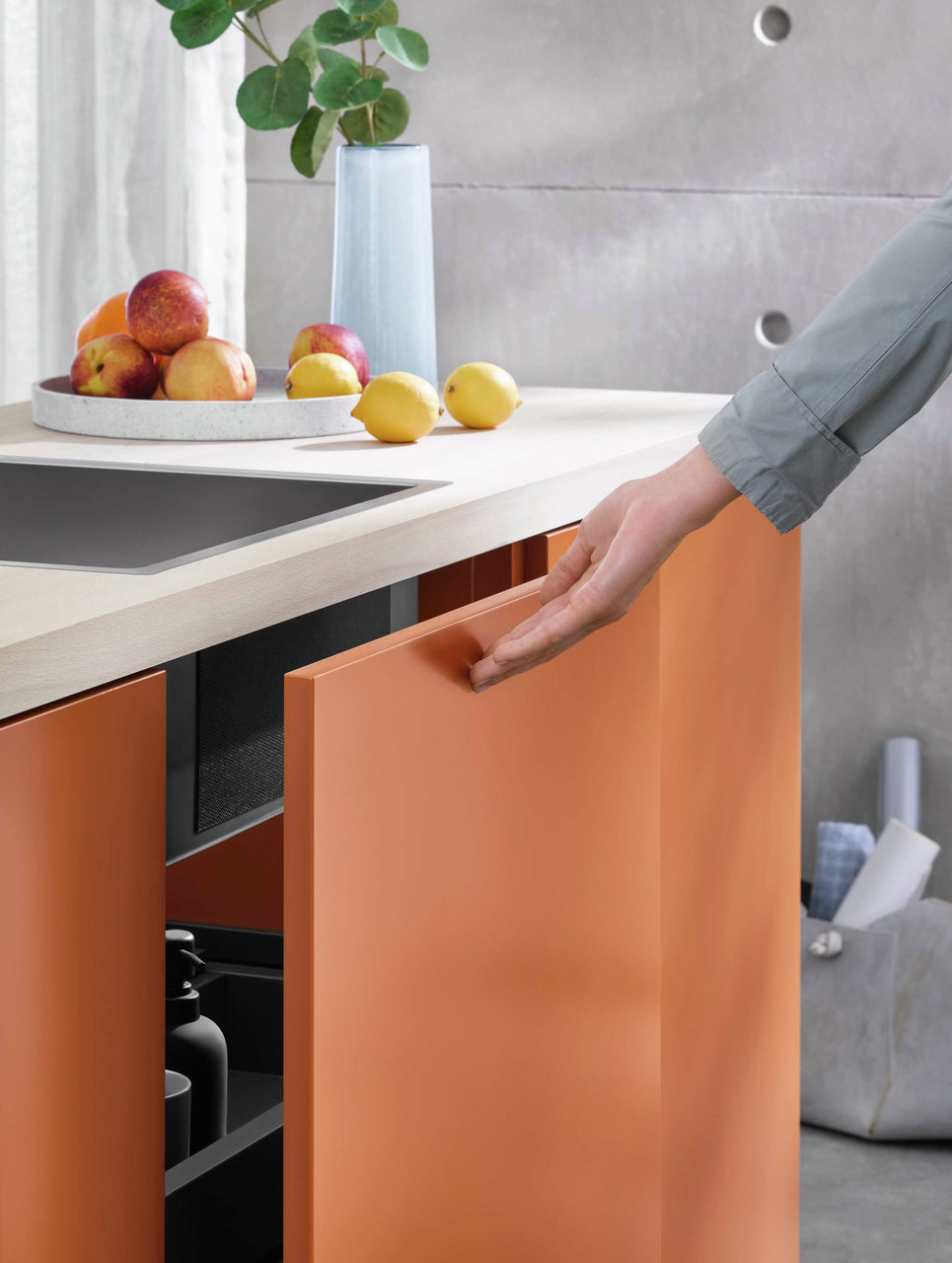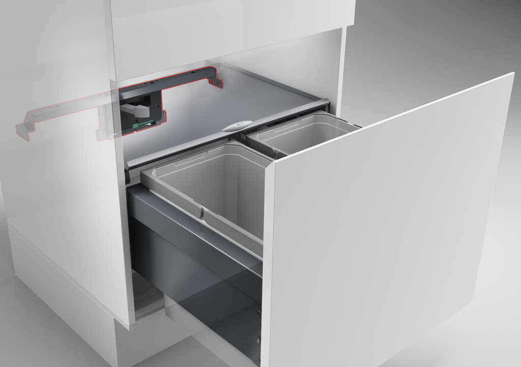 Der elektrische Auswerfer Cox Cick-E® 600 ist kompatibel zu den Cox® Abfallsammlern der Serie mit einer Einbaubreite von 600 mm und einer Einbautiefe von 400 mm. Der Bedienkomfort des Mülltrennsystems wird spürbar erhöht, da ein Antippen des Frontauszugs mit zwei Fingern zum Öffnen genügt. Die Installation des Zubehörs gestaltet sich einfach, indem es platzsparend an den Seitenwänden des Schranks hinter den Abfallbehältern befestigt wird. Für die Montage der im Lieferumfang enthaltenen Quertraverse werden die bereits vorhandenen Bohrungen am Cox® Abfallsammler genutzt. In Kombination mit dem Softeinzug und der Dämpfung kurz vor Erreichen der Endposition zeichnet sich das mit dem Auswerfer ergänzte Mülltrennungssystem durch ein angenehmes Handling aus. Die Stromversorgung erfolgt über einen haushaltsüblichen 230-Volt-Anschluss.
