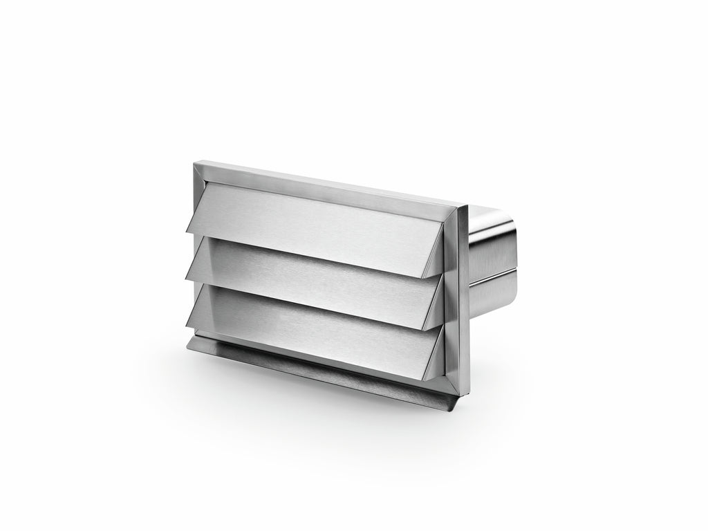 Die COMPAIR® flow E-Jal flow 150 Außenjalousie wird in der Lüftungstechnik eingesetzt und reguliert mit ihrem Lamellendesign den Luftstrom aus der Küche. Gleichzeitig bietet sie einen zusätzlichen Schutz vor Witterungseinflüssen. Die Jalousieklappe hat eine integrierte Rückstauklappe mit den Maßen von 222 x 89 mm für einen Flachkanalanschluss. Für eine hohe Robustheit und Langlebigkeit ist sie aus hochwertigem Edelstahl hergestellt.