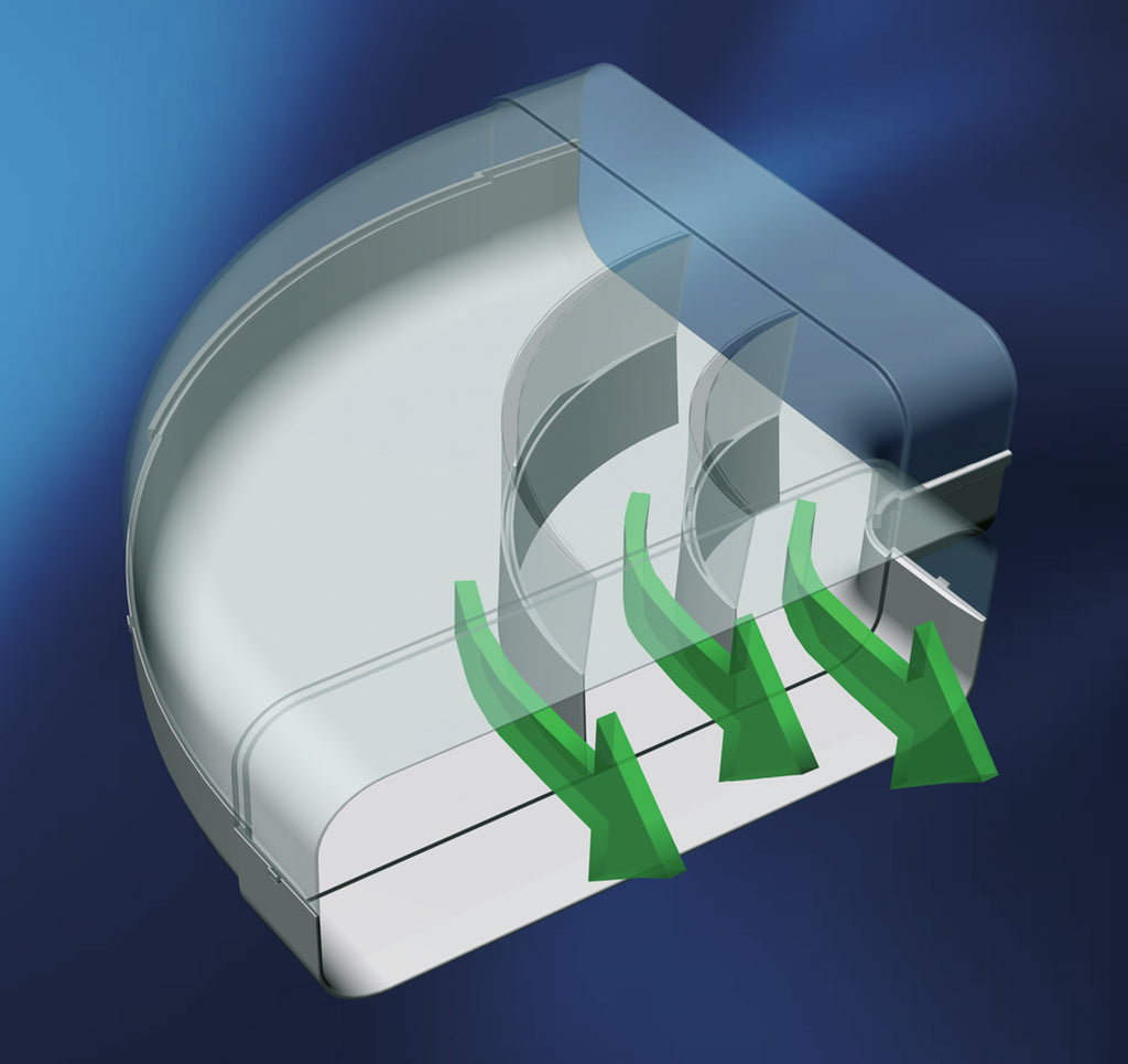 Mit dem COMPAIR® flow F-RBH 150 Rohrbogen horizontal 90° lässt sich die Richtung des Luftstroms um einen Winkel von 90° ändern. Er verfügt über beidseitig angeformte Muffen und ermöglicht mit seinen Luftleitkörpern ein optimales Strömungsverhalten mit minimalem Widerstand. In dem Luftkanalsystem COMPAIR® flow strömt die Luft energieeffizient und mit weniger Geräuschentwicklung um die Kurven.