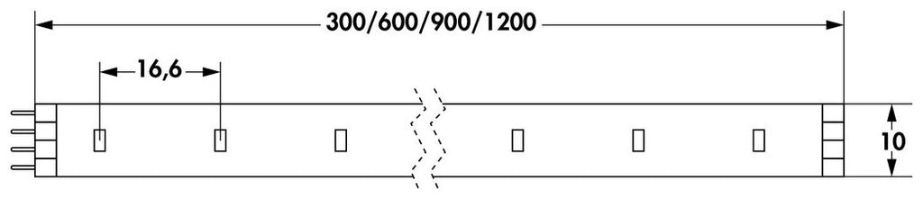 — Streifen 10 mm breit, alle 50 mm kürzbar, ab Schnittpunkt keine Verbindung mehr möglich