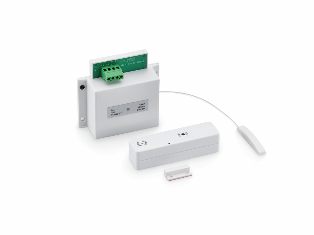 Komplettsystem mit Sender und Empfänger, inkl. Montagematerial und Batterien (lange Lebensdauer, geringer Energieverbrauch).