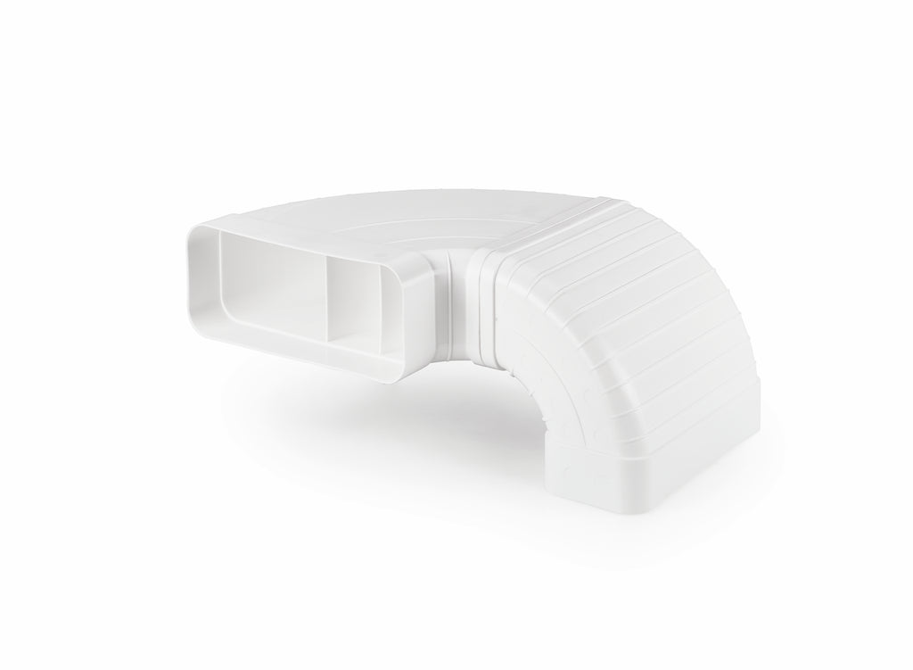 Das COMPAIR® flow 150 Rohrset für Muldenlüfter ermöglicht ein platzsparendes Verlegen der Abluftrohre. Der Anschluss an das Abzugssystem erfolgt abhängig von den baulichen Gegebenheiten auf der linken oder rechten Seite. Die Rohrstutzen sind für die Verbindung von Flachkanalrohren mit einem Querschnitt von 227 x 94 mm vorgesehen. Im Lieferumfang der Downdraft-Lösung ist eine für die sichere Installation benötigte Rolle N-KLEB PVC-Klebeband enthalten.