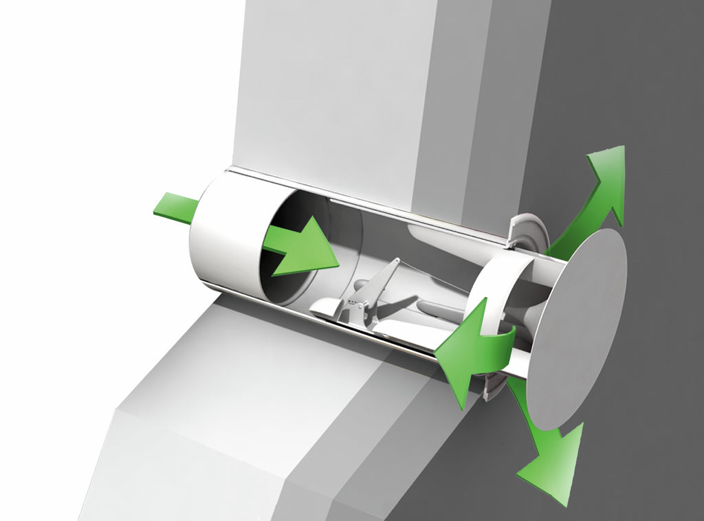 Der COMPAIR® flow Star GTS 150 Mauerkasten sorgt für eine effiziente Abführung von Abluft und wird zur Verbindung von Innen- und Außenbereich in die Wand eingesetzt. Durch das COMPAIR® flow Luftkanalsystem mit Leitkörpertechnologie wird ein optimales Strömungsverhalten ermöglicht. Auch ein minimaler Druckverlust sowie eine geringe Geräuschentwicklung zeichnen das System aus. Um den Strömungskörper auszubremsen, verfügt der Abluft-Mauerkasten über eine zusätzliche Druckfeder. Ausgestattet ist er mit einem Anschluss an ein Rundrohr mit einem Durchmesser von 150 mm. Für den Einbau des Aufnahmerohres empfiehlt sich eine Kernlochbohrung von ca. 155 mm. Da das Rohr teleskopierbar ist, lässt sich die Länge der Durchführung je nach Wandstärke von 314-550 mm anpassen. Wenn erforderlich, kann das Rohr auf eine Länge bis 250 mm gekürzt werden. Den äußeren Abschluss bildet eine runde Außenabdeckung, die der Mauerdurchführung eine elegante Optik verleiht. Durch die Herstellung aus hochwertigem Edelstahl überzeugt sie mit Langlebigkeit und einer hohen Robustheit.