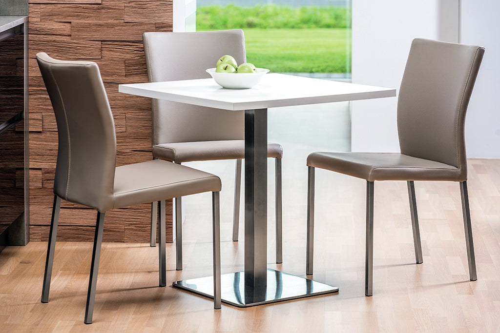 Mit ihrem modernen Design eignet sich die Tischsäule Gliera E perfekt für den Aufbau eines Esstischs in der Küche oder im Essbereich. Das Gesamtbild wird durch die quadratische Bodenplatte in Verbindung mit edlen Oberflächen stilvoll aufgewertet. Das Befestigungskreuz ist für ebenfalls quadratische Tischplatten mit maximalen Maßen von 800 x 800 mm ausgelegt. Abgesehen von Granit besteht eine freie Wahl bei dem Material und dem Style. Es werden die idealen Voraussetzungen für eine individuelle Lösung geschaffen. Passend zu den persönlichen Vorstellungen ist das eckige Säulen-Tischgestell in Schwarz sowie mit einem Edelstahl-Finish erhältlich.
