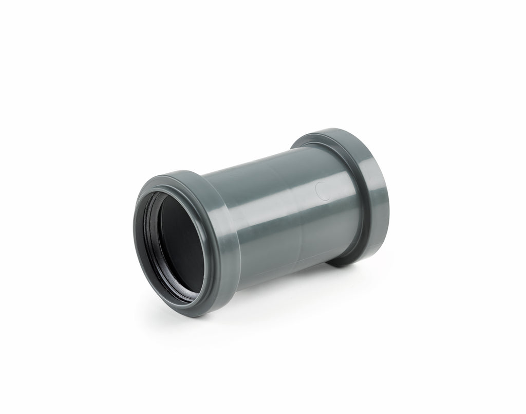 Die HTMM Doppelmuffe für die Abwasserinstallation ist beidseitig mit Gummidichtungen für eine zuverlässige Verbindung ausgestattet. Bei der Fertigung der Muffe kommt der Norm DIN 4102 entsprechend Polypropylen in hitzebeständiger Qualität zum Einsatz.