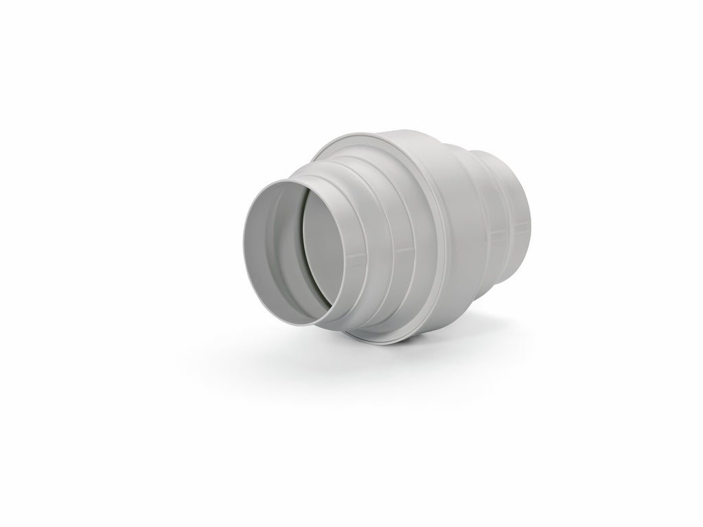 Verhindert das Zurücklaufen von Kondenswasser in die Dunstabzugshaube bei vertikaler Abluftführung. Strömungsoptimierte Ausführung durch Vermeidung von scharfkantigen Strömungsabrisskanten. Beidseitiger Anschluss von Schläuchen und Rohren auf Ø 125 mm und Ø 150 mm möglich. Bei Anschluss auf Ø 150 mm muss Ø-125-Teilstück an vorgesehener Schneidelinie abgetrennt werden.