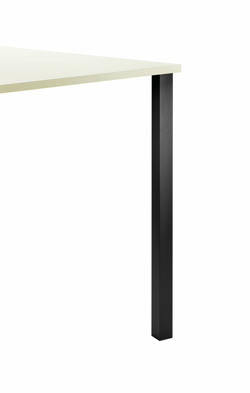 Stützfuß. Solides quadratisches Aluminiumprofil. Geeignet für Ansatztische, aber nicht für freistehende Tische, nicht kürzbar.