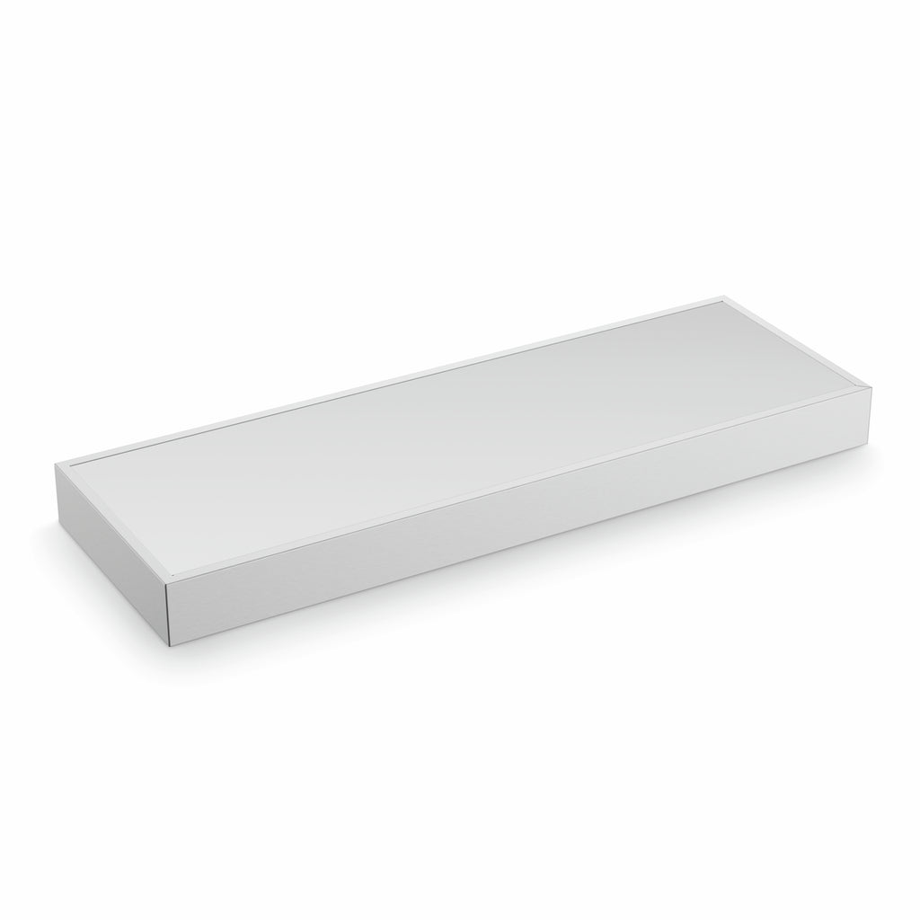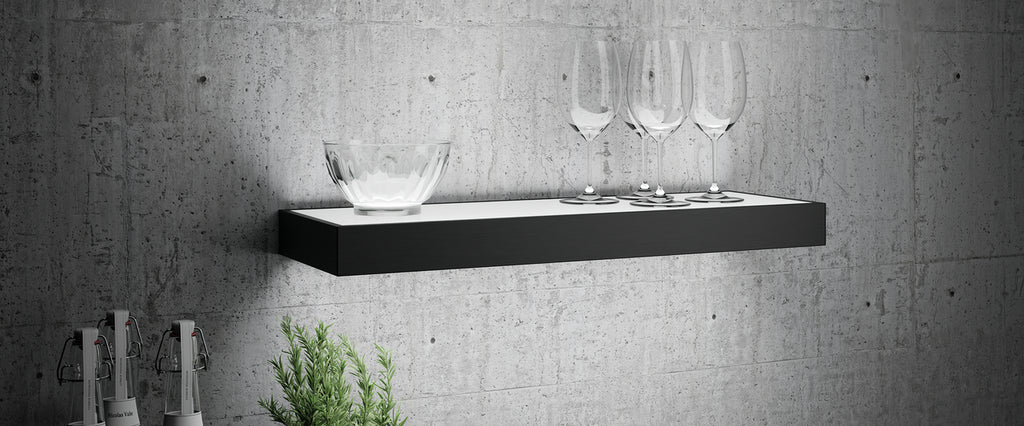 Ein besonderes Ambientelicht lässt sich mit dem LED-Lichtboden Lista 50 inklusive Farbwechsler in der Küche realisieren. Das moderne, rechteckige Wandregal setzt Gläser oder andere Objekte dekorativ in Szene. Es ist mit einer LED-Beleuchtung ausgestattet, die für eine gleichmäßige Ausleuchtung über die gesamte Breite sorgt. Dabei strahlt sie gleichzeitig nach oben und unten. Die Basis bildet ein robustes Aluminiumgehäuse, das in unterschiedlichen Farbgestaltungen zur Auswahl steht. Es verfügt beidseitig über ein mattiertes Sicherheitsglas. Die fest eingebauten LEDs der Energieeffizienzklasse G lassen sich stufenlos in der Lichtfarbe von Warmweiß mit 2700 K bis Tageslichtweiß mit 6500 K regeln. Ihre Leistung beträgt bis zu 64 Lumen je Watt. Zur Auswahl stehen verschiedene Breiten von 45 bis 120 cm, die von 3,1 bis 9 W leisten. Komplettiert wird der Lieferumfang durch eine 200 cm lange Zuleitung mit Ministecksystem. Der Leuchtboden kann bis zu einer Bodentiefe von 20 cm freihängend und inklusive Neigungsverstellung montiert werden. Dabei verbergen sich die Schrauben unsichtbar in der Rückseite. Die LED-Leuchte lässt sich mit den optional erhältlichen Konvertern und Steuerungselementen aus dem smarten LUMICA LIC/MEC LED-System kombinieren. Diese ermöglichen eine Wunschlichtregelung per Smartphone, Fernbedienung oder Sprachsteuerung.
