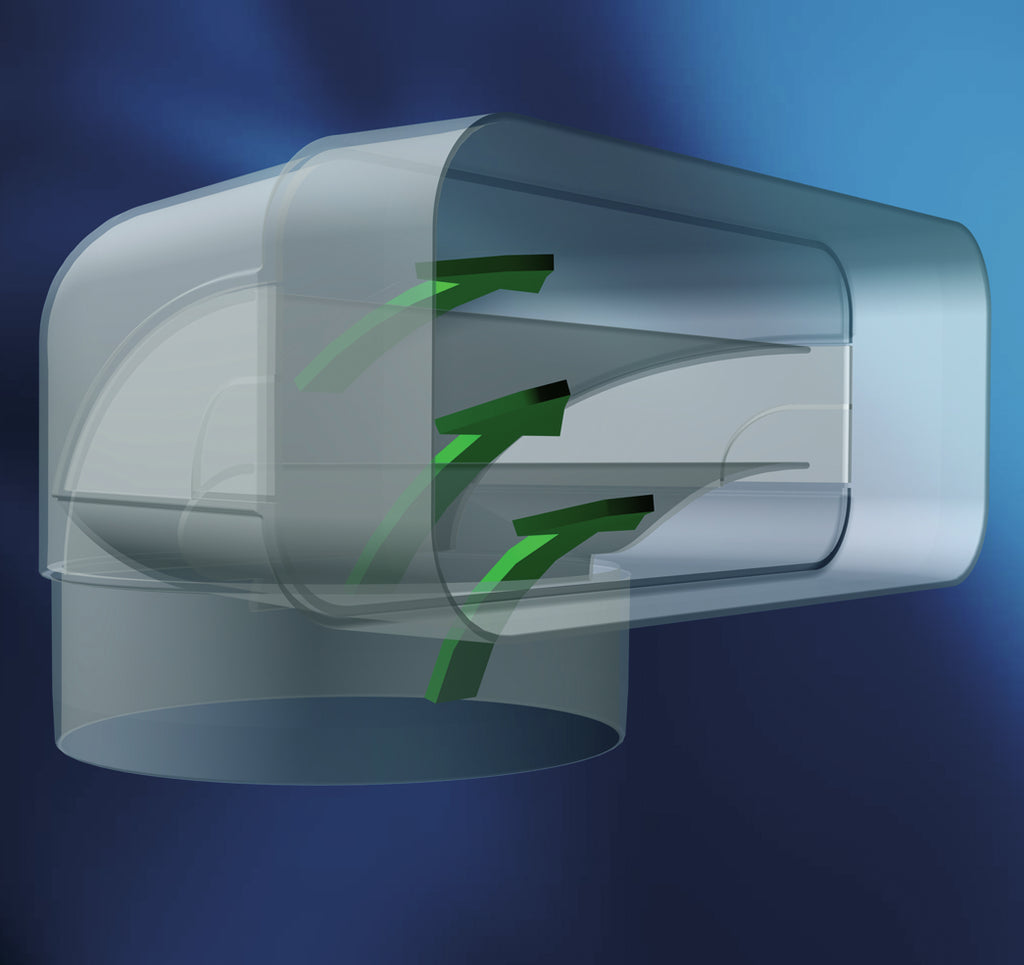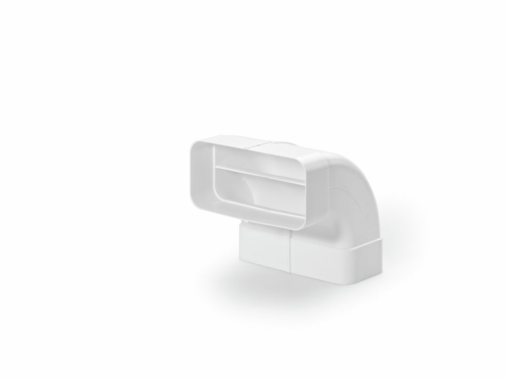 Der COMPAIR® flow MF-RBV 125 Rohrbogen vertikal mit beidseitig angeformten Muffen ermöglicht die Richtungsänderung des Luftstroms in Luftkanälen in einem Winkel von 90°. Durch die integrierten Luftleitkörper wird ein optimales Strömungsverhalten mit niedrigen Druckverlusten ermöglicht. Für eine leichte und zuverlässige Verbindung mit einem Universalverbinder verfügt das Lüftungsformteil über ein Rastelement.