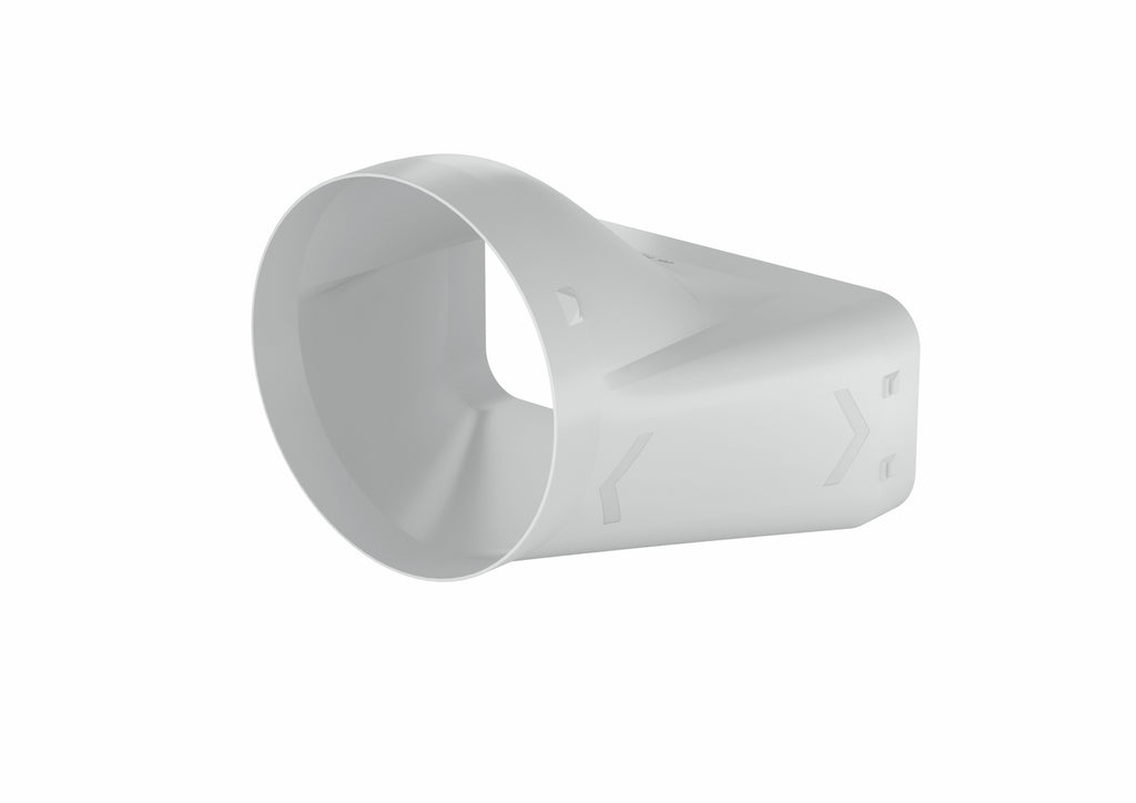 Für einen direkten Übergang von einem flachen zu einem runden Abluftkanal sorgt das COMPAIR® PRIME flow P-EST 150 Endstück. Durch seinen Einsatz lässt sich das Entlüftungssystem der Küche flexibel verlegen. Dabei ermöglicht eine optimierte Strömungsführung einen verlustfreien Übergang. Das Lüftungsformteil besitzt ein rundes Anschlussstück mit einem Durchmesser von 150 mm auf einen Flachanschluss mit den Abmessungen 222 x 89 mm. Dank der N-Klick-Technik lässt sich das Verbindungselement werkzeug- und klebefrei aufstecken.