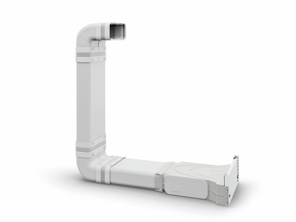 ® Lüftungssystem zeichnet sich durch eine verbesserte Ablufttechnik und eine flexible Führung des Rohres durch integrierte Kompensatoren in den Universalverbindern aus, die sich in jede Richtung bis 15 Grad versetzen lassen. Das Set besteht aus der GREENflow Filterbox mit OMEGA-Aktivkohlefilter und einem strömungsoptimierten Lamellengitter aus eloxiertem Aluminium für den Einbau in die Sockelleiste. Es ist edelstahlfarbig ausgeführt für eine elegante Optik in der Küche. Einstellbare Luftleitkörper in der Filterbox sowie in den Winkelbögen verteilen den Luftstrom gleichmäßig. Überdies ist der Luftreiniger mit einer rechteckigen Aufnahme des Systemmaßes von 150 mm ausgestattet. Im Lieferumfang befindet sich zudem ein geführter Flachkanal der Stärke 150 mm inklusive vertikaler Rohrbögen im 90° Winkel sowie flacher Universalverbinder. Dank des N-Klick-Systems mit integrierten Rasterelementen lässt sich das Umluftsystem mühelos ohne den Einsatz von Werkzeug montieren. Das Filterbox-Set ist passend für Sockelhöhen von 100 bis 150 mm.