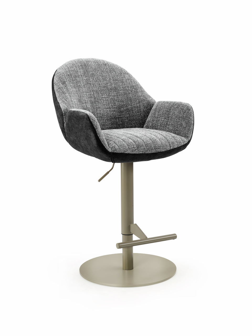 Der Sitro AC Hocker bietet eine durchdachte Kombination aus Funktionalität und Komfort für den Ess- und Wohnbereich. Er verfügt über eine variable Höhenverstellung und 360°-Drehbarkeit, wodurch er sich flexibel an unterschiedliche Situationen anpassen lässt. Sitz und Rückenlehne sind mit strapazierfähigem Stoff bezogen und verfügen über einen gepolsterten Kern, der auch über längere Zeit angenehmes Sitzen ermöglicht. Die geschlossene Rückenlehne und Armlehnen sorgen für ein komfortables Nutzererlebnis. Mit einer Belastbarkeit von rund 130 kg ist der Hocker robust ausgelegt und eignet sich für den täglichen Einsatz. Filzgleiter am Fuß schützen den Boden und erleichtern das Bewegen des Gestells. Die kompakte Bauform mit verstellbarer Sitzhöhe macht ihn zu einer praktischen Ergänzung für verschiedene Sitzgelegenheiten im Innenbereich.