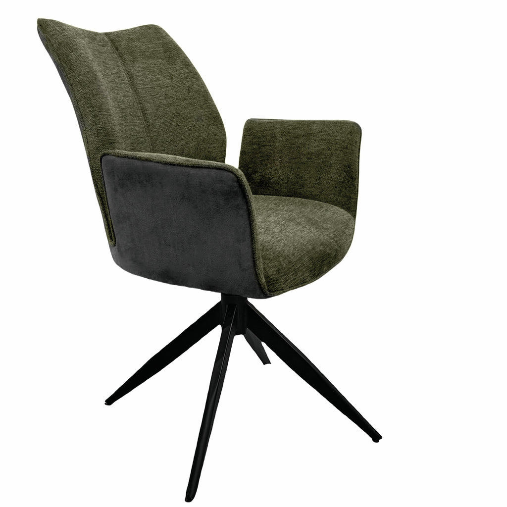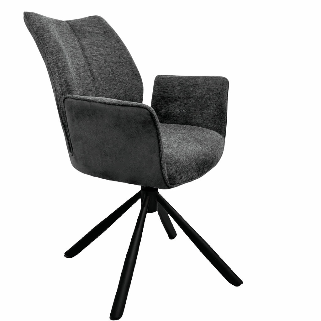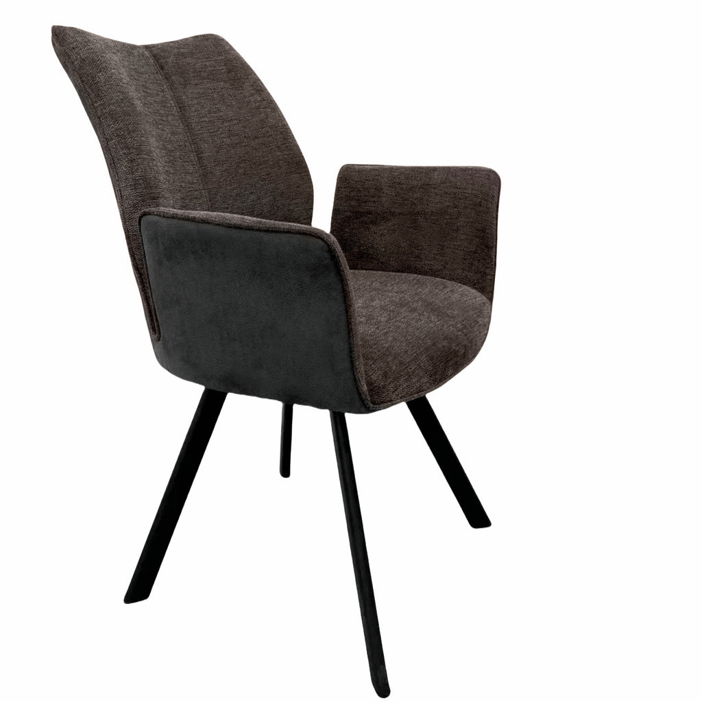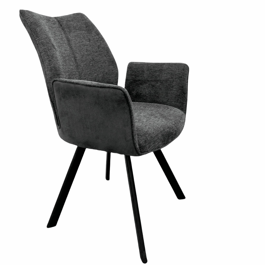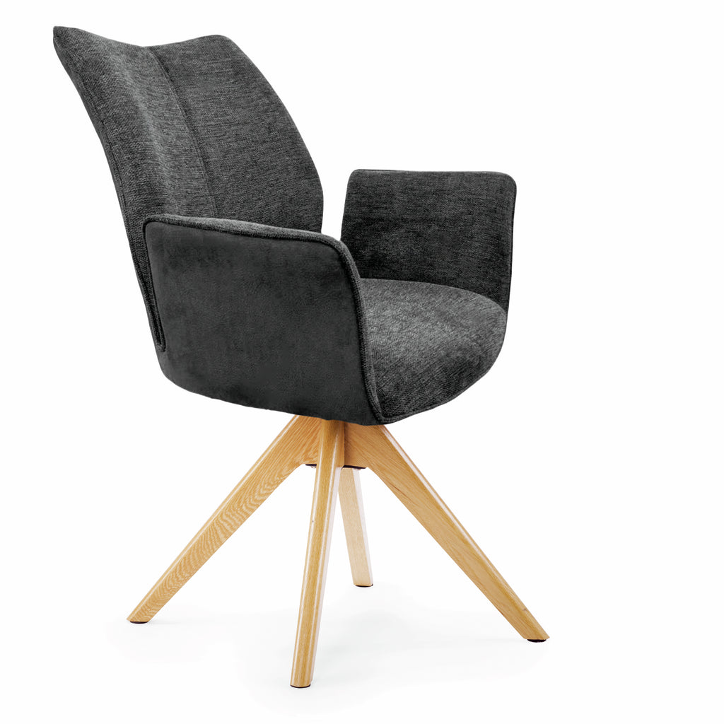 Mit dem Polsterstuhl Stella 1AS lassen sich angenehme Mahlzeiten in behaglicher und wohnlicher Atmosphäre genießen. Seine formschöne und hohe Rückenlehne mit raffinierter Nahtführung und das schicke Gestell in matt-schwarz machen ihn zu einem optischen Highlight in jeder Kücheneinrichtung. Durch das moderne und schlichte Design bietet der Esszimmerstuhl vielseitige Kombinationsmöglichkeiten mit unterschiedlichen Küchenmöbeln. Dank der bequemen Armlehnen und Polsterung mit Wellenunterfederung sorgt er für einen ausgezeichneten Sitzkomfort und ermöglicht viele gesellige, entspannte Stunden. Sitz und Rücken sind in einem attraktiven Materialmix hergestellt und verfügen einen Bezug aus Stoff an der Vorderseite und einen Kunstlederbezug an der Rückseite. Mit seinem hochwertigen Gestell aus Edelstahl überzeugt der Küchenstuhl durch robuste Eigenschaften und Langlebigkeit. Für die Realisierung individueller Wohnwünsche sind diverse Ausführungen wählbar.