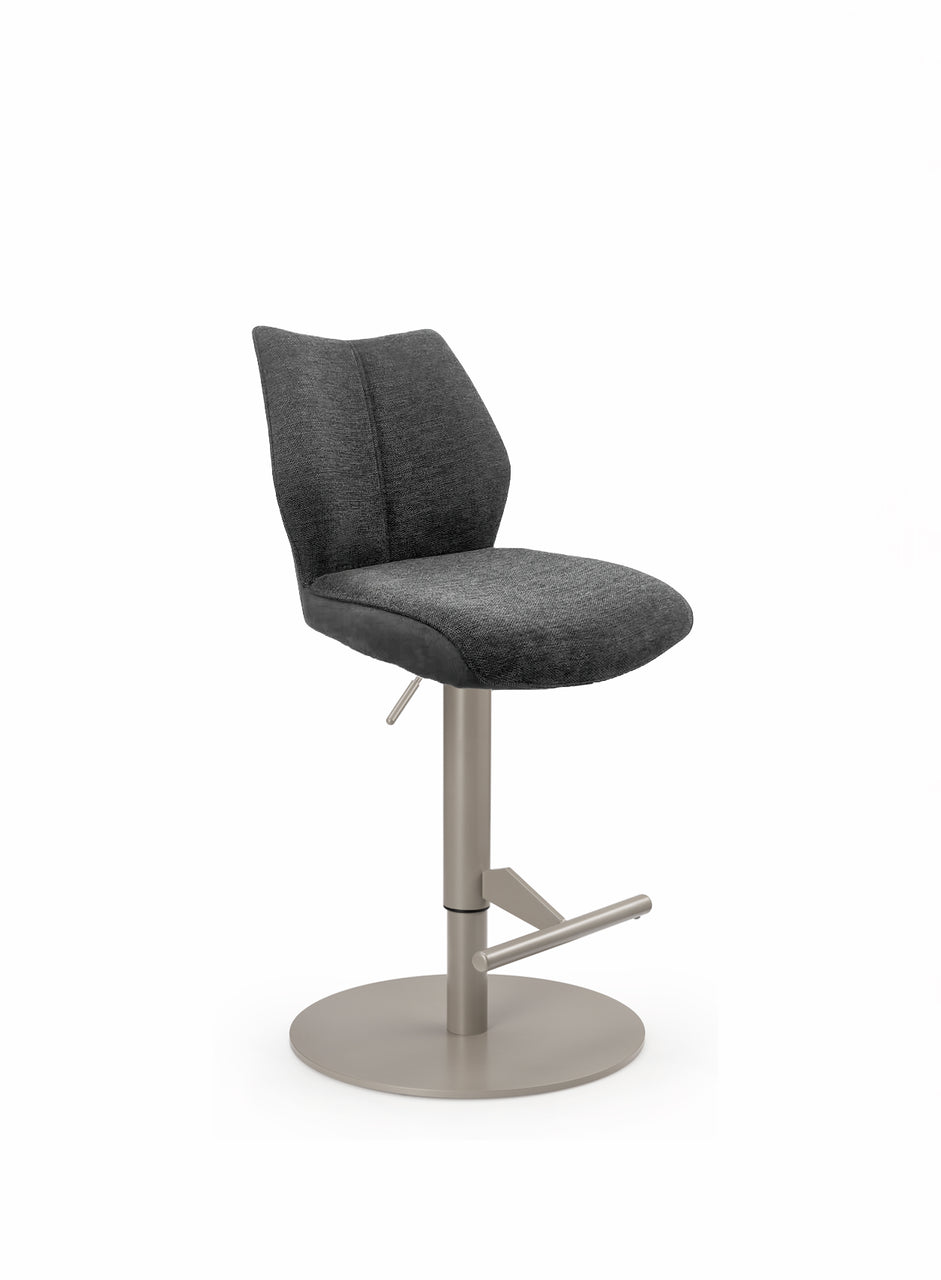 Der Barhocker Stella S bietet die perfekte Kombination aus Design, Funktion und Komfort, wodurch er ein Highlight in jeder Kücheneinrichtung ist. Mit seinem modernen und schlanken Aussehen lässt er sich in vielseitige Raumkonzepte integrieren. Durch das Gestell mit Bodenplatte und geschlossene Rückenlehne in attraktiver Formgebung wertet der Hocker jeden Küchentresen und Hausbar gekonnt auf. Dank der variablen Höhenverstellung lässt er sich individuell an die vorhandene Tischhöhe und Sitzbedürfnisse anpassen. Für eine maximale Bewegungsfreiheit ist der Barstuhl um 360° drehbar. Durch die Sitzfläche und Rückenlehne mit Wellenunterfederung bietet er einen hohen Sitzkomfort für entspannte Drinks und Essen. Durch ihren Bezug aus Stoff an der Vorderseite und Kunstleder an der Rückseite lassen sich Sitz und Rücken einfach reinigen. Das Gestell aus Stahl sorgt für eine sichere Basis und zeichnet sich durch Langlebigkeit aus. Der Küchenstuhl ist in verschiedenen Farbausführungen wählbar, wodurch er harmonisch auf die Einrichtung abgestimmt werden kann.