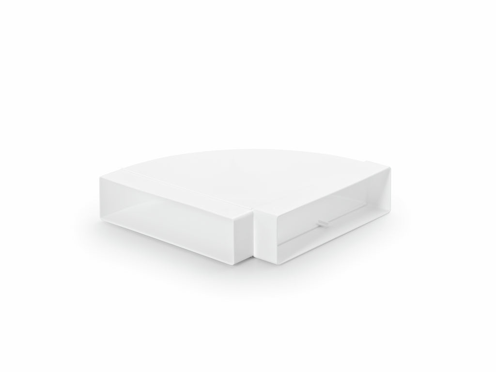 Wird eine Richtungsänderung innerhalb des geplanten Lüftungssystems benötigt, kommt der COMPAIR® top T-RBH 1 System 125 Breitkanal-Rohrbogen zum Einsatz. Er erlaubt das horizontale Umlenken in einem Winkel von 90° Grad, sodass es sich um eine praktische Ecklösung handelt. Die Montage des Formteils erfolgt werkzeuglos mithilfe einer durchdachten Klick-Stecktechnik. Es ist einseitig mit einer angeformten Muffe ausgestattet. Die gesamte COMPAIR® top Serie zeichnet sich durch ihre leistungsstarke Effizienz und einer optimierten Luftströmung aus.