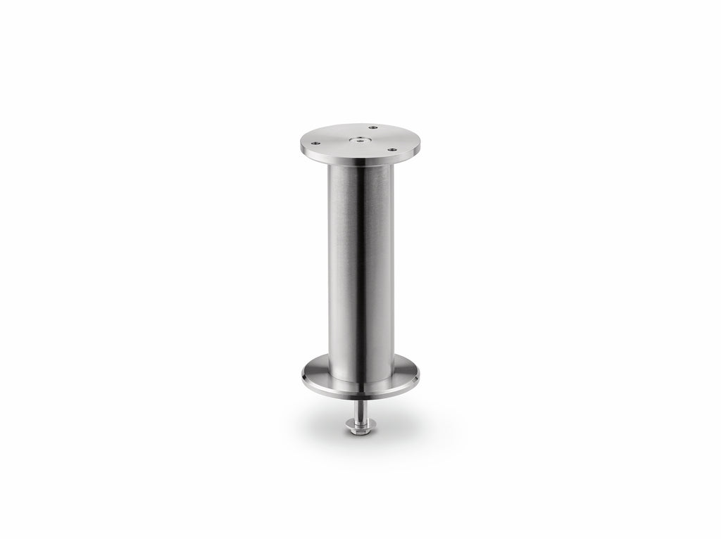 Der Konsolenträger Typ 41 dient als Stützelement für die Küchentheke. Er zeichnet sich durch ein klassisches, rundes Design aus und hat eine gerade Form. Mit ihrer zeitlosen Optik lässt sich die Konsole in jedes Küchenkonzept integrieren. Durch die Fertigung aus Edelstahl besticht sie mit einer langlebigen und robusten Qualität. Auch pflegeleichte Eigenschaften kennzeichnen das Material. Dank der Schraubbefestigung ist die Stützkonsole schnell und ohne großen Aufwand montiert. Die Theke lässt sich durch optionales Zubehör wie einer Glasadapterscheibe ergänzen, die durch einen Glaser verklebt werden sollte.