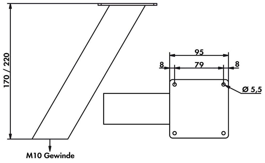 Der elegante Konsolenträger Typ 50 zeichnet sich durch seinen angewinkelten Verlauf im Zusammenspiel mit geradlinigen Konturen in Vierkantform aus. Er dient als Stützelement, um eine erhöhte Thekenplatte zum entspannten Frühstücken und Essen in die Küchenzeile zu integrieren. Bei gleichmäßig verteilter Last sowie unter Berücksichtigung des Maximalabstands zwischen den Stützkonsolen und dem Maximalüberstand der Theke liegt die Tragkraft bei ca. 30 kg. Bei der Fertigung kommt korrosionsbeständiges Aluminium zum Einsatz. Hinsichtlich der Oberflächenoptik und der Höhe stehen verschiedene Varianten zur Verfügung. Die Schraubverbindung mit der Arbeitsplatte erfolgt über ein M10-Gewinde.