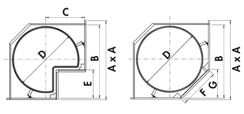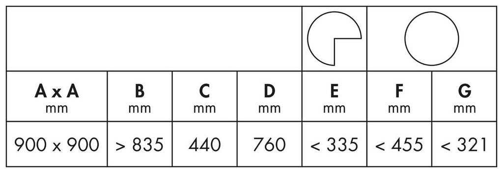 — für 900 x 900 mm Schrankbreiten
