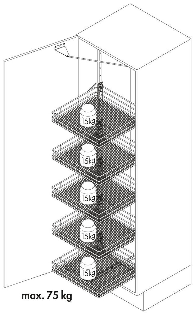 Mit dem teleskopierbaren Tragrahmen VS TAL Gate lässt sich der Vollauszug in Vorratsschränken komplettieren. Er ist Teil eines cleveren Auszugssystems, das den vorhandenen Stauraum im Hochschrank maximal ausnutzt und gleichzeitig einen einfachen Zugriff auf den Inhalt erlaubt. Zudem sorgt es für einen perfekten Überblick. Dabei punktet der Schrankbeschlag durch Komfort und Design. Gleich beim Öffnen des Küchenschranks zeigt er sein gesamtes Potenzial: Das Staugut bewegt sich in einem Zug nach außen. Geeignet ist der Einbaurahmen für Korpusbreiten von 45, 50 und 60 cm. Er benötigt eine Einbautiefe von mindestens 48 cm. Die Einbauhöhe lässt sich je nach Ausführung in einem Bereich von 120 bis 214 cm variieren. Der Rahmen stellt eine individuelle Höhenverstellung für die Körbe zur Verfügung. Die gesamte Tragkraft des Auszugsystems beläuft sich auf 75 kg. Robuste Materialien und eine hohe Verarbeitungsgüte sind weitere Highlights des Gestells. Die Montage des Rahmengestells erfolgt werkzeugfrei auf der unteren und oberen Führung sowie auf dem Mitnehmer. Sie kann rechts oder links durchgeführt werden. Die passende Führung und die Ablagekörbe sind separat erhältlich.