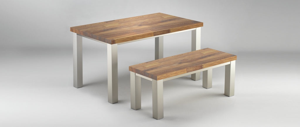 Ein Esstisch nach individuellen Vorstellungen lässt sich mit dem Tischgestell TG80 realisieren. Sein geradliniges und elegantes Design schafft eine moderne Atmosphäre in der Küche oder im Esszimmer. Aufgebaut ist es als Vierfußgestell mit Blockbeinen, die eine Stärke von 80 x 80 mm besitzen. Als Verbindungselemente fungieren hochkant gestellte Quertraversen mit einem Querschnitt von 60 x 30 mm. Dadurch ergibt sich ein stabiles Untergestell mit einer hohen Belastbarkeit von bis zu 120 kg. Kombinierbar ist das Gestell mit einer beliebigen Tischplatte aus Holz oder Glas. Bei Verwendung einer Küchenarbeitsplatte können die entsprechenden Vorbohrungen genutzt werden. Gefertigt ist die Tischbasis aus qualitätsvollen Aluminiumprofilen. Dabei können zwischen trendgerechten Oberflächenveredelungen sowie unterschiedlichen Abmessungen ausgewählt werden. Die Montage des zerlegten Metallgestells erfolgt durch eine stabile Verschraubung. Im Zubehör sind ein Glasadapter-Plattenset sowie eine Höhenverstellung aus Aluminium verfügbar.
